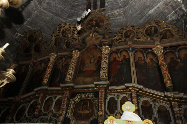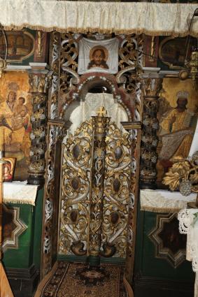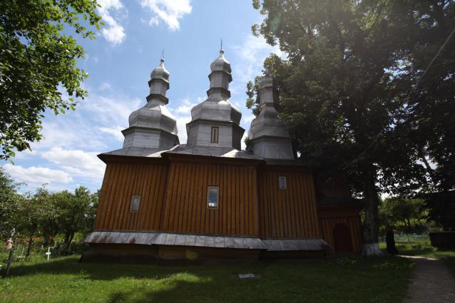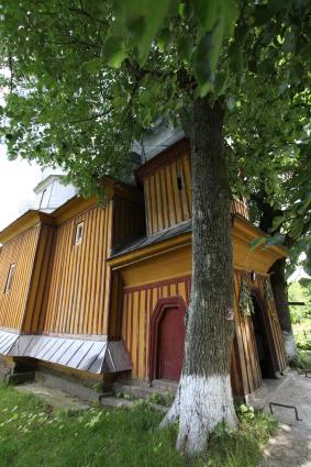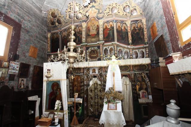 Biserica este o construcţie din lemn de stejar (căptuşită cu scândura), aşezată pe grinzi masive, tot din lemn de stejar, înconjurate cu un brâu de ciment. Are formă de cruce şi este împodobită cu patru turle, câte una pe altar, naos, pronaos şi pridvor, numai cea de pe naos fiind deschisă în formă octogonală şi luminată de câte o fereastră la nord şi sud. Toate turlele sunt construite în trei etaje, îmbrăcate în tablă ca şi acoperişurile care sunt piramidale. Altarul este luminat de câte o fereastră la est, sud şi nord. Catapeteasma, lucrată artistic, se prelungeşte până sus la boltă.